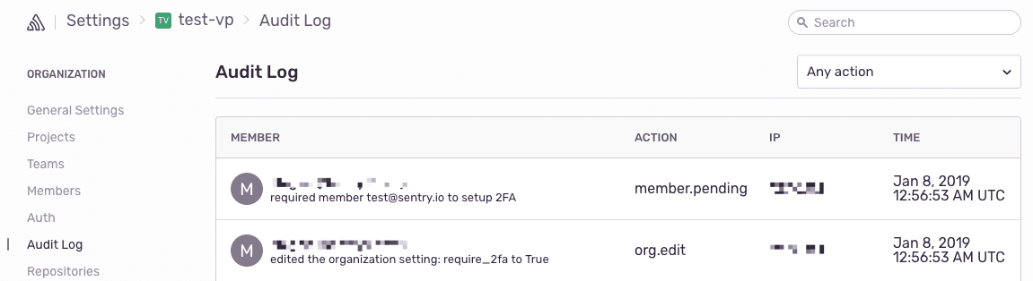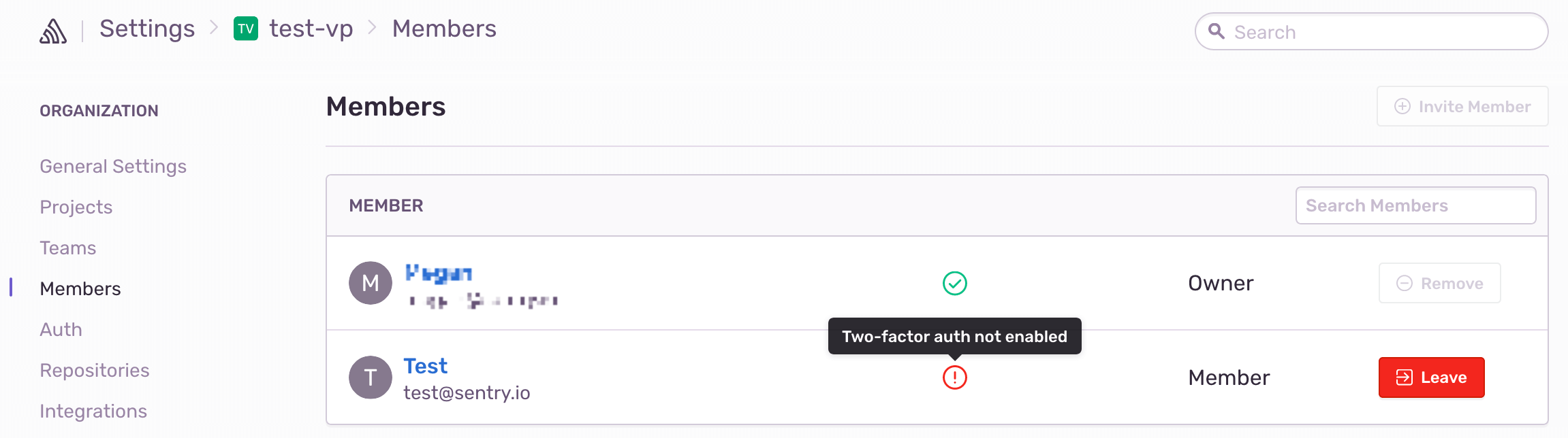 For an added layer of security, you can require your organization members to sign in to Sentry with two-factor authentication (2FA).